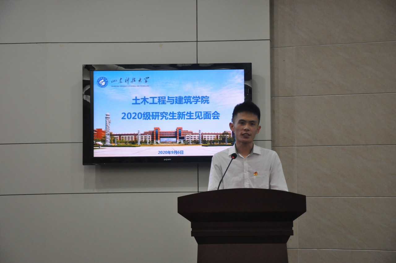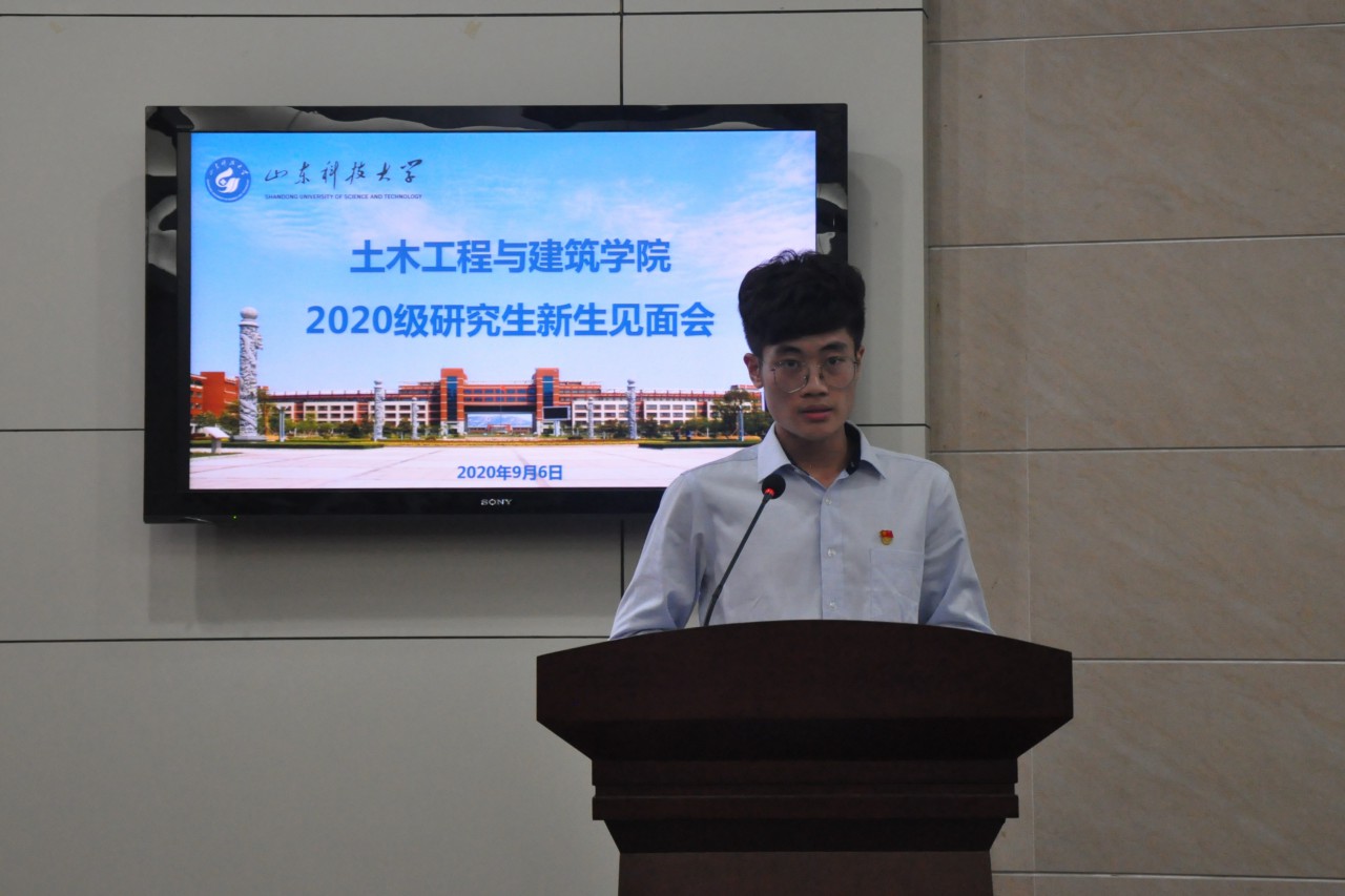 在校研究生代表韩一鸣结合自身的研究生生活,鼓励各位新生积极追逐科研目标,大胆探索,多向优秀的人学习,用青春谱写人生新篇章。同时,他还分享了伟德bevictor中文版优秀校友对新生的叮嘱希望。研究生新生代表王继伟向大家讲述了自己在山科四年的学习生活,希望同学们尽快完成研究生的身份转换,既要做一名学习者,又要做一名创新者,脚踏实地走好每一步。最后,研究生新生辅导员沈娇针对疫情防控工作以及近期相关事项做了具体安排。