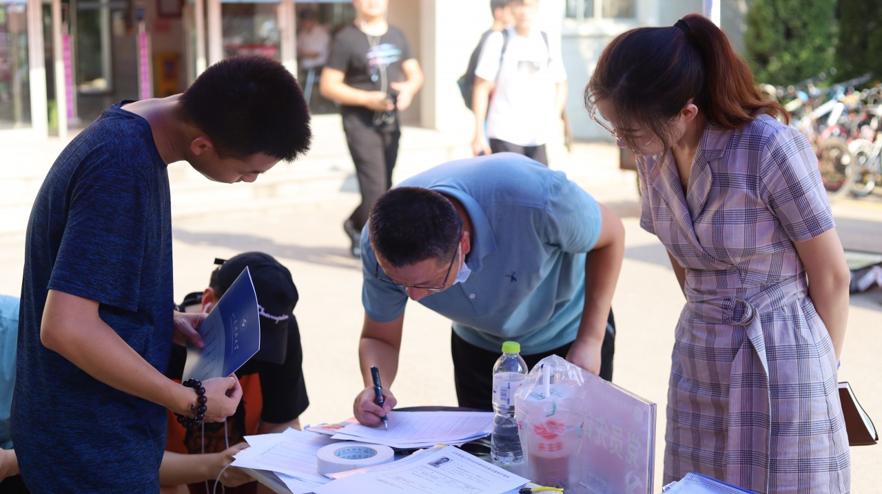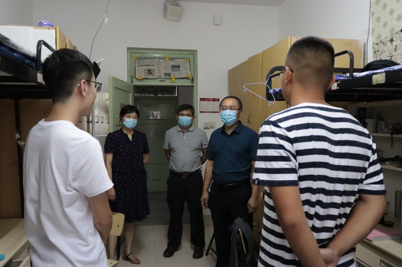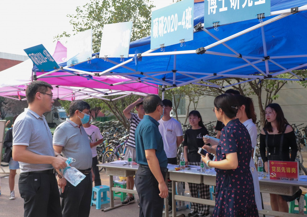 学院领导老师心系学生、情挂迎新。9月6日,院长王崇革、党委副书记高静、副院长王刚在辅导员的陪同下到现场考察迎新进度、深入宿舍看望新生。学院领导老师亲切与学生交流,了解学生报道心情,询问学生关于读研的想法和规划,并向他们介绍学院情况,提出做合格研究生的要求。