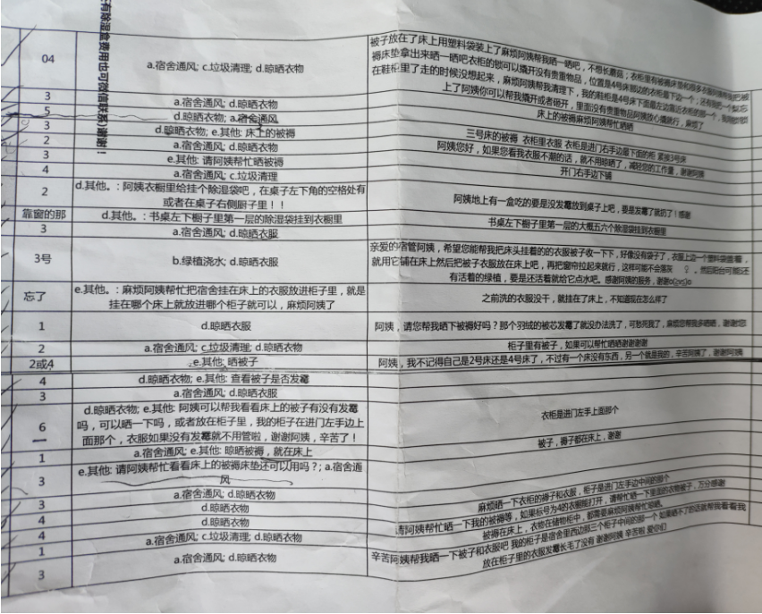 上午,伟德bevictor中文版辅导员们按照同学们需求进入宿舍进行服务,帮助学生晾晒衣服,整理宿舍卫生,给已经干枯的绿植浇水,给宿舍通风,把同学们需要晾晒的被褥放到阳台晾晒或者抱到繁星广场晾晒。下午,老师们把晾晒好的被子和衣服整理好放回学生宿舍,整理好宿舍卫生,关好宿舍门窗后离开。