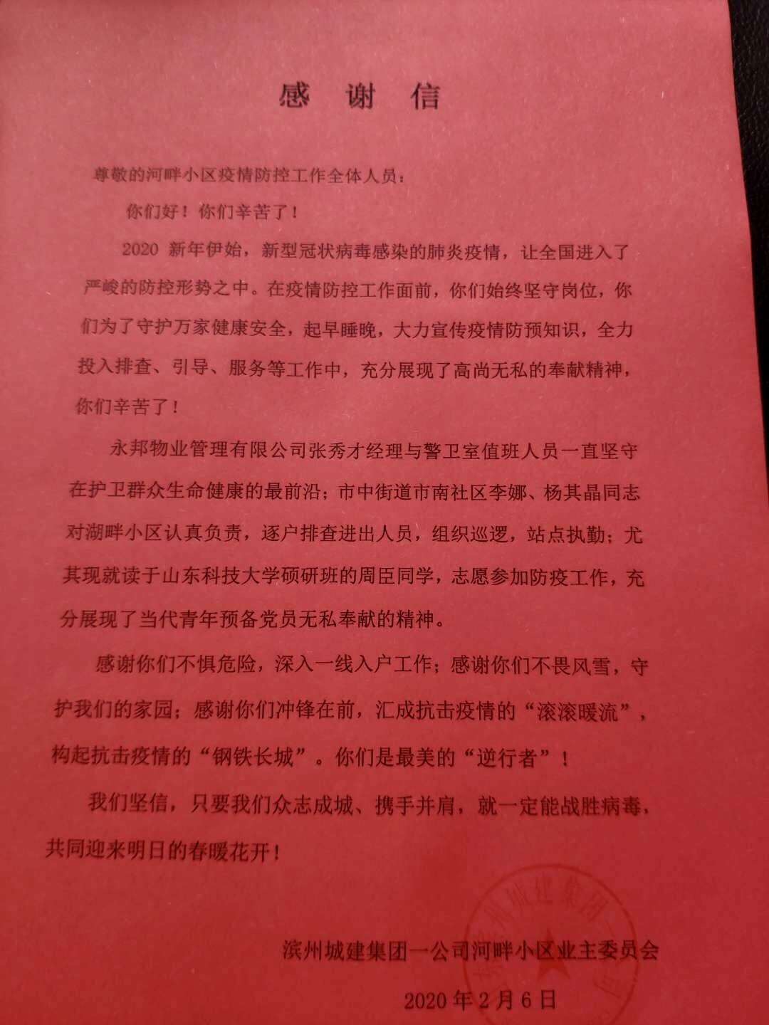 “他是我们市南社区的第一名志愿者。”社区网格长李会青说道,“周臣在1月24日就联系我,主动请缨。1月30日,正是社区缺人手的时候,他正式开始了工作。他工作的时候很踏实、很仔细,大家都对他赞不绝口。”对于担任社区志愿者这件事情,周臣认为:国家兴亡,匹夫有责,越是在国家艰难的时刻,共产党员越要冲到前线去,投身到为人民服务的工作中去。