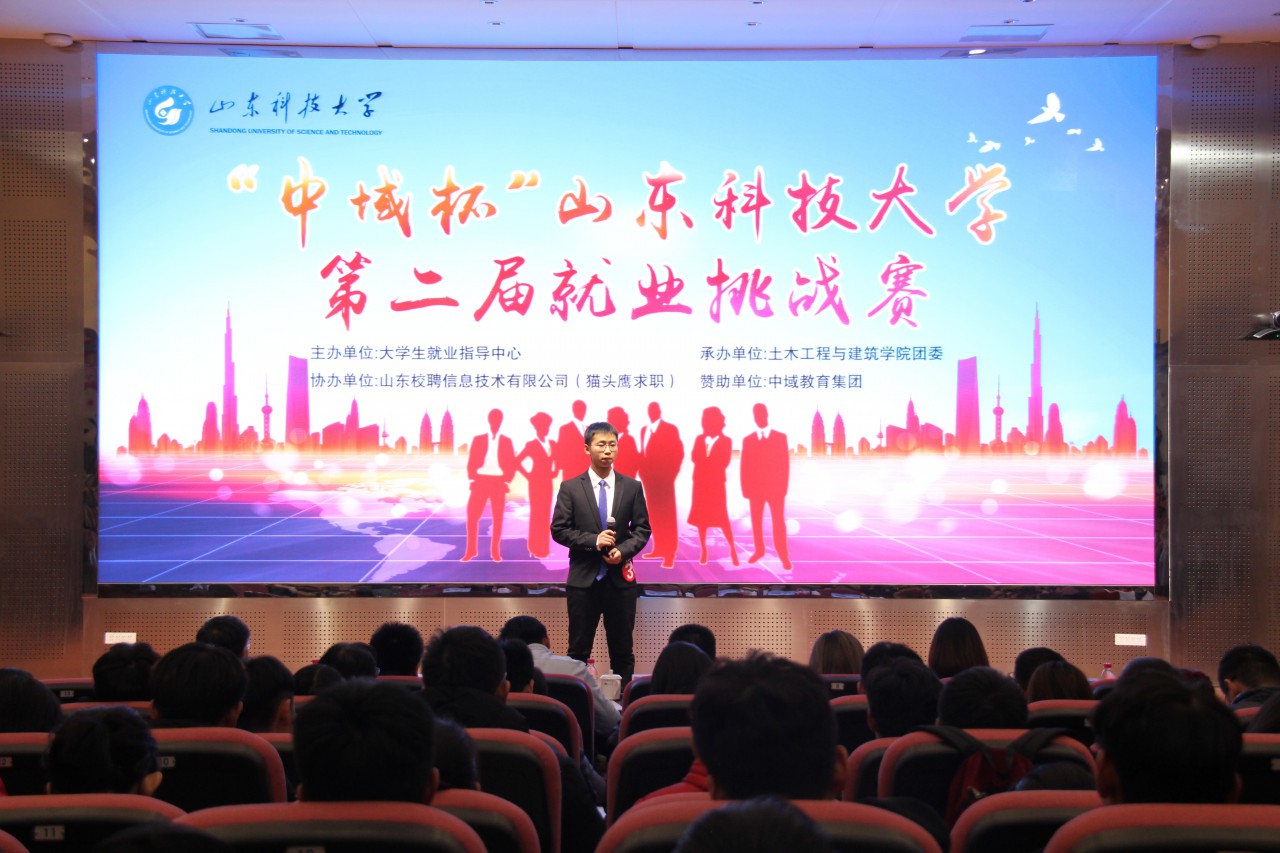 为培养大学生求职就业意识,树立科学就业观,拓展求职思路,增强求职能力,提高就业质量,搭建学生与企业之间的交流平台,由大学生就业指导中心主办、伟德bevictor中文版团委承办、山东校聘信息技术有限公司(猫头鹰求职)协办、中域教育集团赞助的伟德bevictor中文版第二届大学生就业挑战赛于2019年11月8日启动。历经求职知识培训、求职技能培训两项培训,初赛、复赛、预决赛三个赛程,12月5日下午4点,就业挑战赛决赛在9号教学楼144报告厅落下帷幕。
