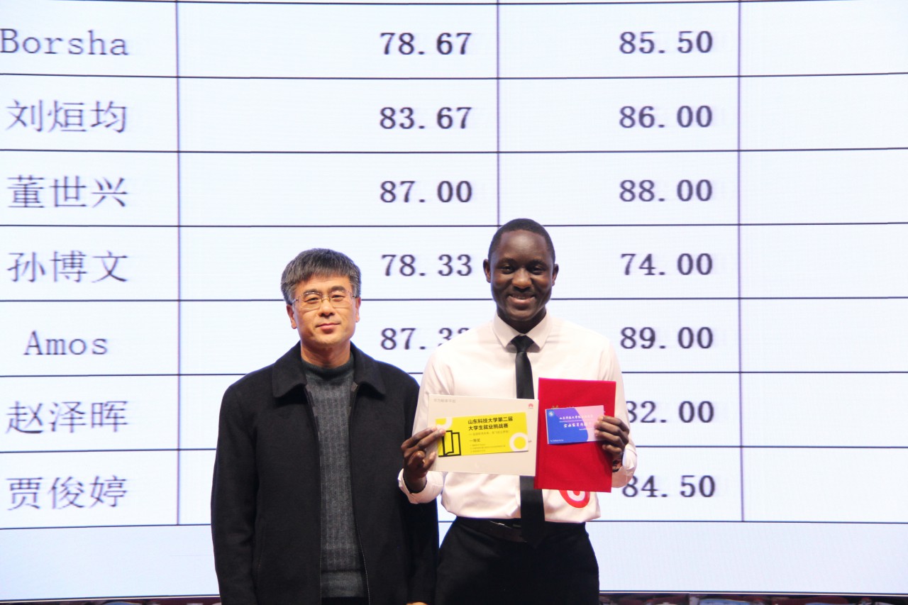 最终荣获本次比赛一等奖的是来自国际交流学院的Amos,荣获二等奖的是赵泽晖、贾俊婷、董世兴、刘烜均、Borsha,荣获三等奖的是孟祥发、张志远、赵鑫源、王文静等。另外,根据比赛的网络投票环节,伟德bevictor中文版的苏彪、张志成获得“人气奖”,外语学院的白照众获得“最具人气奖”。颁奖环节后,优创(青岛)数据技术有限公司向刘煊均颁发了“面试直通卡”, 青岛新东方前途出国咨询有限公司更是为赵鑫源发出了宝贵的“offer”。