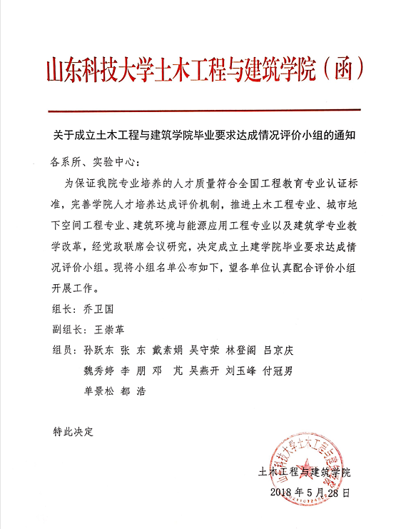 关于成立伟德bevictor中文版毕业要求达成情况评价小组的通知